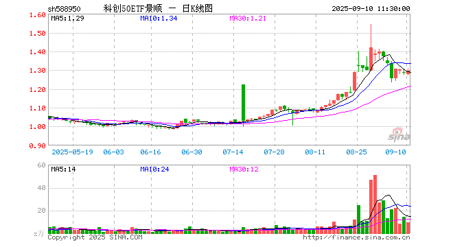 9月10日,截止午间收盘,科创50ETF景顺(588950)涨1.01%,报1.296元,成交额1197.66万元。科创50ETF景顺(588950)重仓股方面,中芯国际截止午盘涨1.05%,海光信息涨4.27%,寒武纪涨2.85%,澜起科技涨7.30%,中微公司涨0.88%,金山办公涨2.46%,联影医疗跌0.43%,传音控股跌0.23%,九号公司涨0.21%。